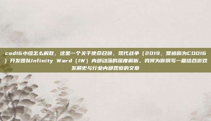 COD16小组的解散,不是一个悲剧,而是一个行业寓言,它告诉我们:一个伟大作品的诞生,往往依赖着一群理想主义者的极致共振,但在商业利益和行业巨变的浪潮下,这种共振极其脆弱。