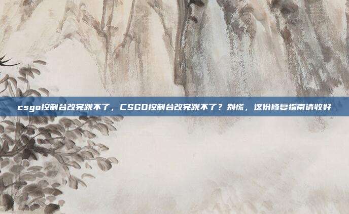 相信不少CSGO(现CS2)玩家都遇到过这种“控制台改完跳不了”的尴尬情况,明明是想优化操作,结果反而把自己“锁”在了地上,别急,今天我们就来系统排查一下,为什么改完控制台后你会跳不起来,以及如何正确修复。